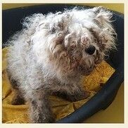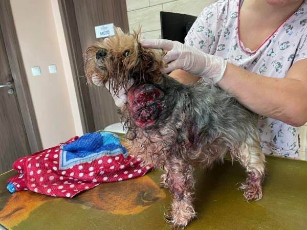 Der kleine Mann wurde verwahrlost, das ganze Fell voller Blut und mit einem riesigen Geschwür, auf der Straße gefunden. Ein Besitzer hat sich nie gemeldet.