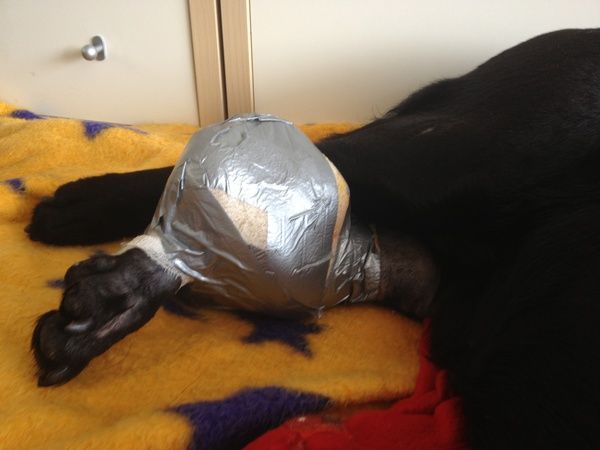 Dank Retriever in Not und dank meiner Pflegefamilie darf ich alle drei Tage zu einer lieben Tierärztin zum Verbandswechsel gehen. Die in der Praxis sind immer ganz stolz, weil ich so brav bin und mir jedes Mal sehr geduldig einen neuen, schönen Verband verpassen lasse. - Würde jeder andere Hund an meiner Stelle aber auch tun, denn die Tierärzte sind immer sehr nett und vorsichtig.